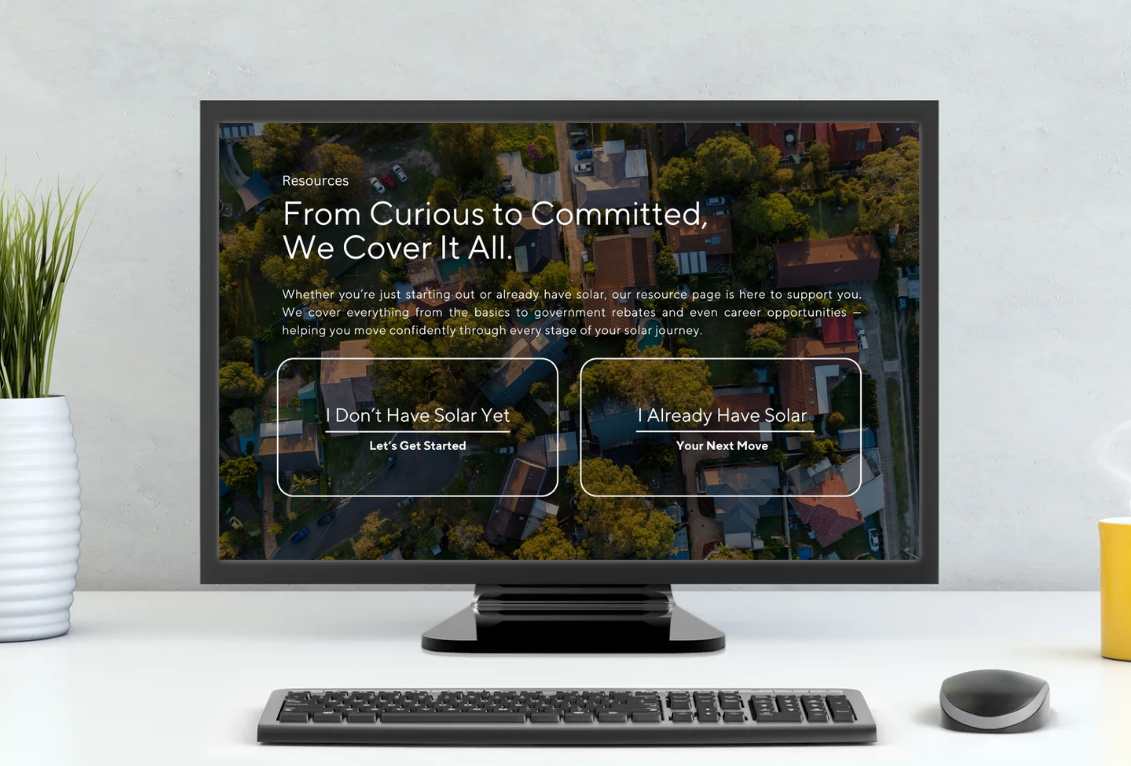 This is a mockup of the website I developed as a resource hub. Its purpose is to collect and share information about solar technology and upcoming events for end users, while highlighting our mission and promoting sustainable initiatives.