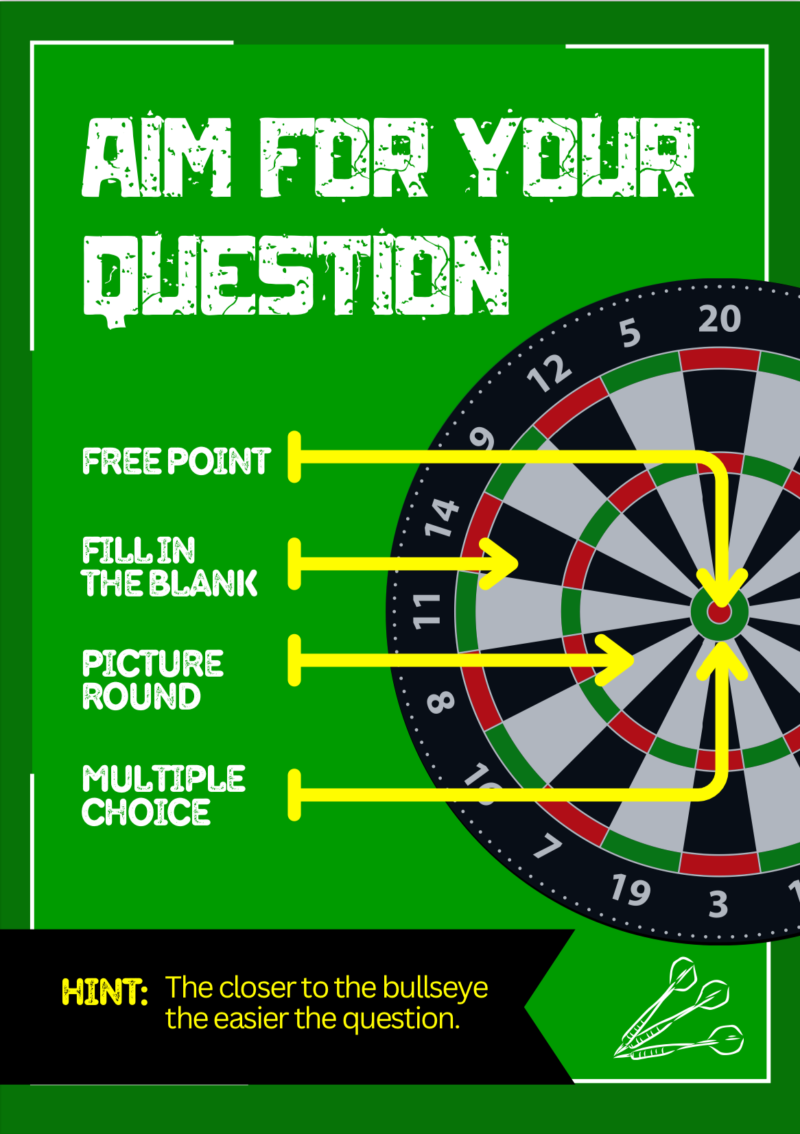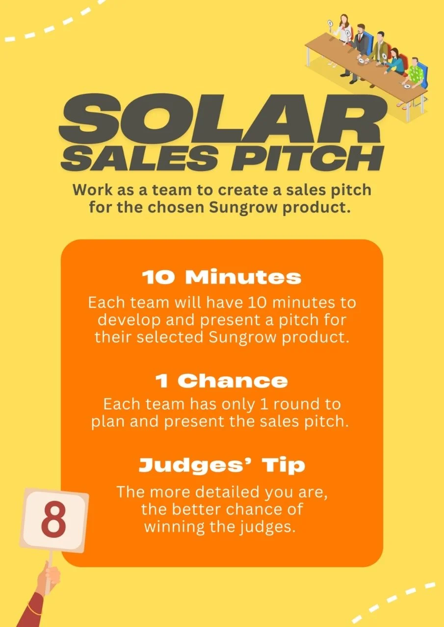 These three signs were displayed at each booth to explain the rules of the games. The first, Solar Sales Pitch, required players to deliver a pitch under ten minutes to our judges, earning a point for every key topic they covered. The second, Who Does It Faster, was an installation challenge where participants were timed on how quickly they could complete the task. Lastly, the Darts Booth gave players the chance to throw darts, with the difficulty of their question determined by how close they landed to the bullseye. The closer the dart, the easier the question.